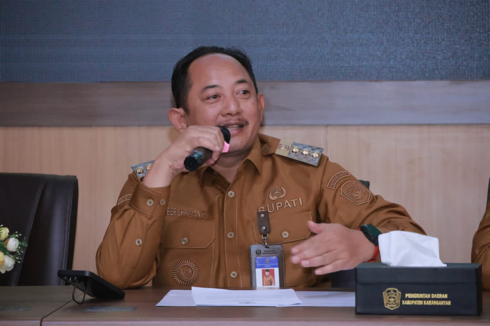 Kabar Karanganyar, – Seakan tak sabar menyongsong Karanganyar Baru, Rober Christanto Bupati Karanganyar periode 2025 – 2030 setelah ikuti apel sertijab di halaman kantor Sekretariat Daerah Kabupaten Karanganyar langsung gelar rapat dinas lengkap jajaran pemerintah Kabupaten Karanganyar di ruang Podang kantor Sekretariat Daerah Senin, 3 Februari 2025.