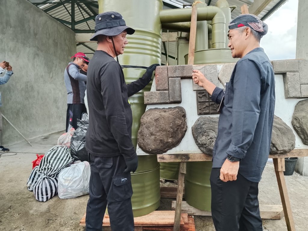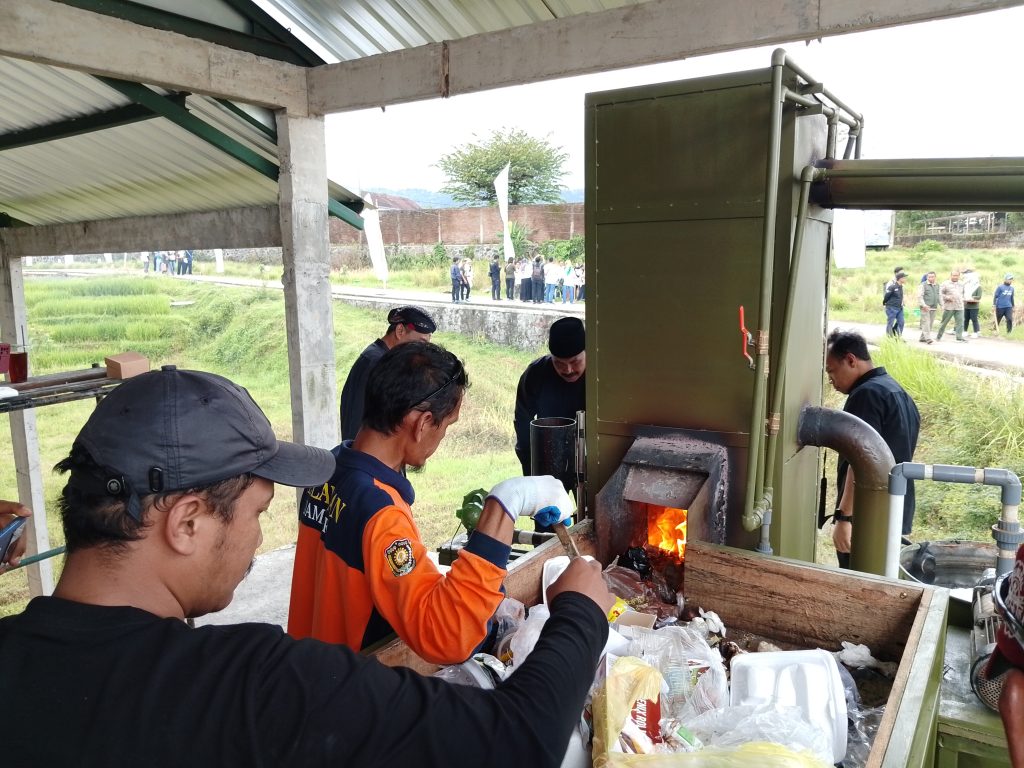 Relawan Sampah Desa. Plumbon Tawangmangu memasukan sampah ke tungku predator sampah