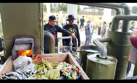 Relawan Sampah Desa. Plumbon Tawangmangu memasukan sampah ke tungku predator sampah