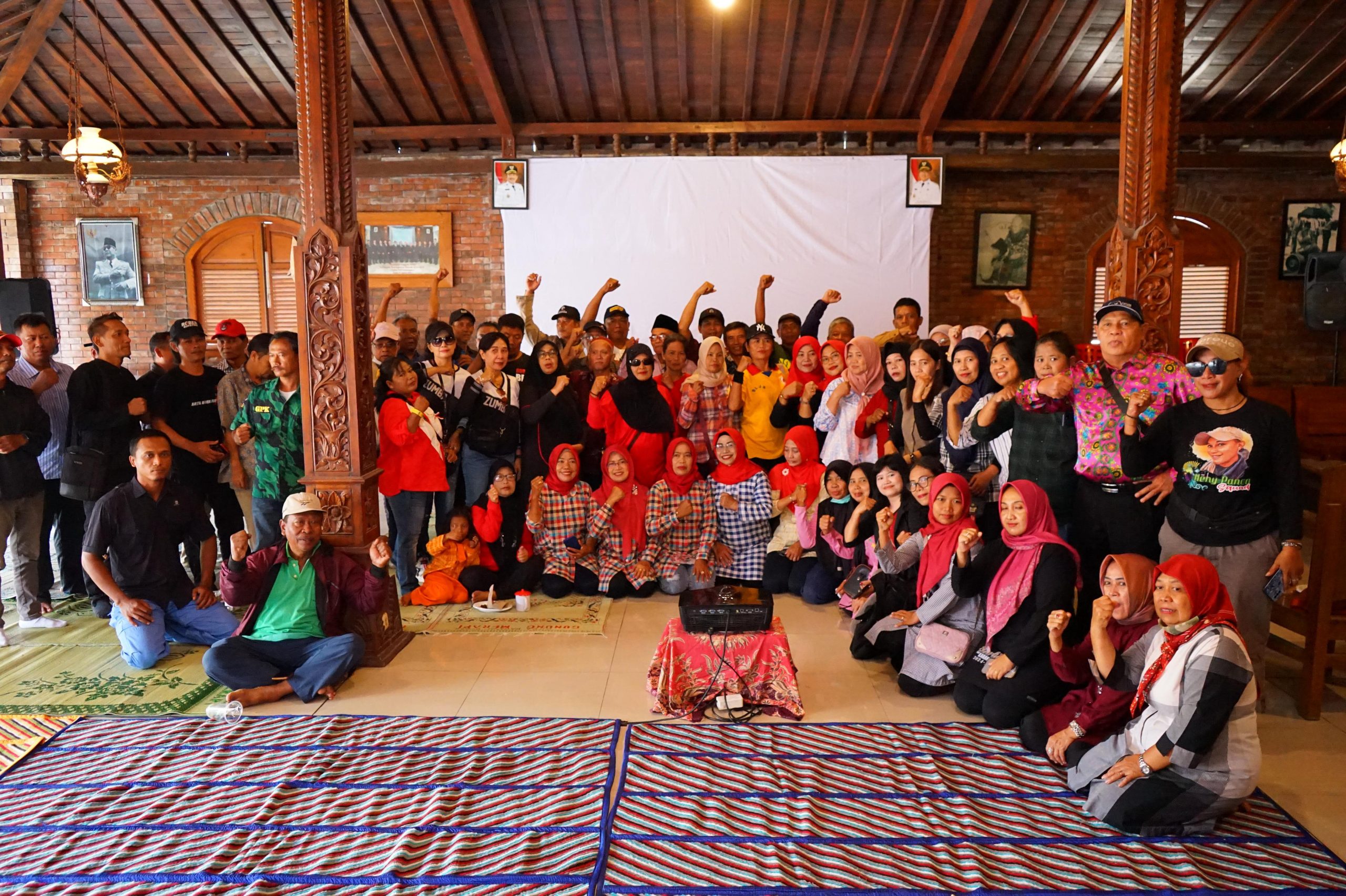 Ratusan pasang mata relawan Berlian menyaksikan secara seksama prosesi pelantikan Rober -Adhe di Joglo Dawan yang merupakan kediaman dari Bupati Karanganyar 2025 – 2030.