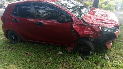 Kecelakaan di Tugu Ngipik Bangsri Karangpandan akibatkan Agya dan Supra X Rusak Parah